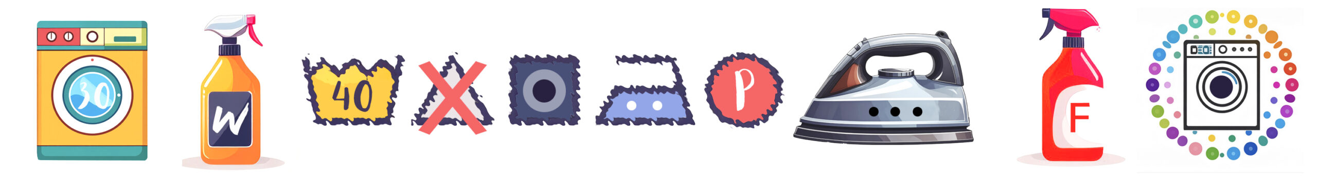 Nabízíme tisk velikostních štítků, univerzálních štítků s polem na zaškrtnutí velikosti, libovolného textu o materiálech i symbolů údržby. Pozor – symboly údržby jsou chráněny jako ochranná známka organizací GINETEX, v ČR zastoupenou firmou SOTEX. Můžeme vytisknout štítky s těmito symboly, pokud máte u firmy SOTEX zaplacenou licenci. V praxi to funguje tak, že kontaktujete firmu SOTEX, zaplatíte si u nich určitou částku – je to cca 1.500,- Kč na rok a po tuto dobu si můžete od nás nechávat tisknout štítky s těmito symboly:
