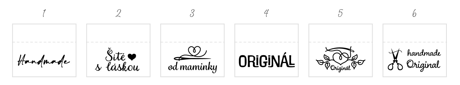 TPU průhledné štítky s motivy a nápisy, bez přehybu, k našití do švu nahoře, 3×2,5cm – 1,90 Kč/ks. Texty i motivy můžeme u všech štítků upravit podle potřeby. Vyrábíme od 1 kusu.