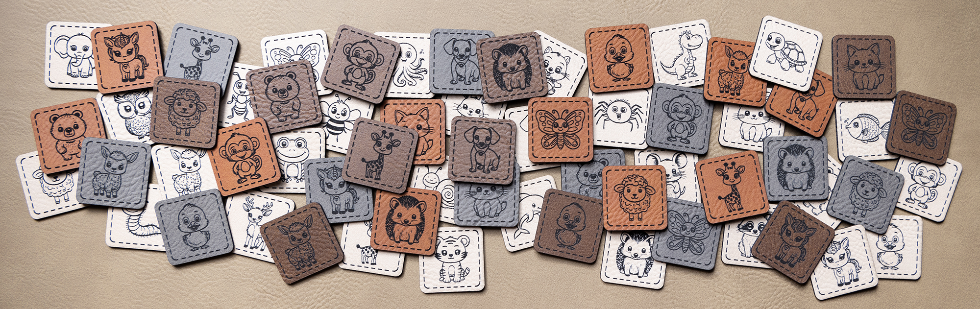 Zvířátka na kožence. Štítky z koženky jsou vhodné pro celou řadu projektů, používají se na oblečení i na doplňky, z naší nabídky štítků jsou nejatraktivnější. Na výběr je osm druhů koženek, doporučujeme zvolit velikost 2,8×2,8cm, nebo 2,4×2,4cm.